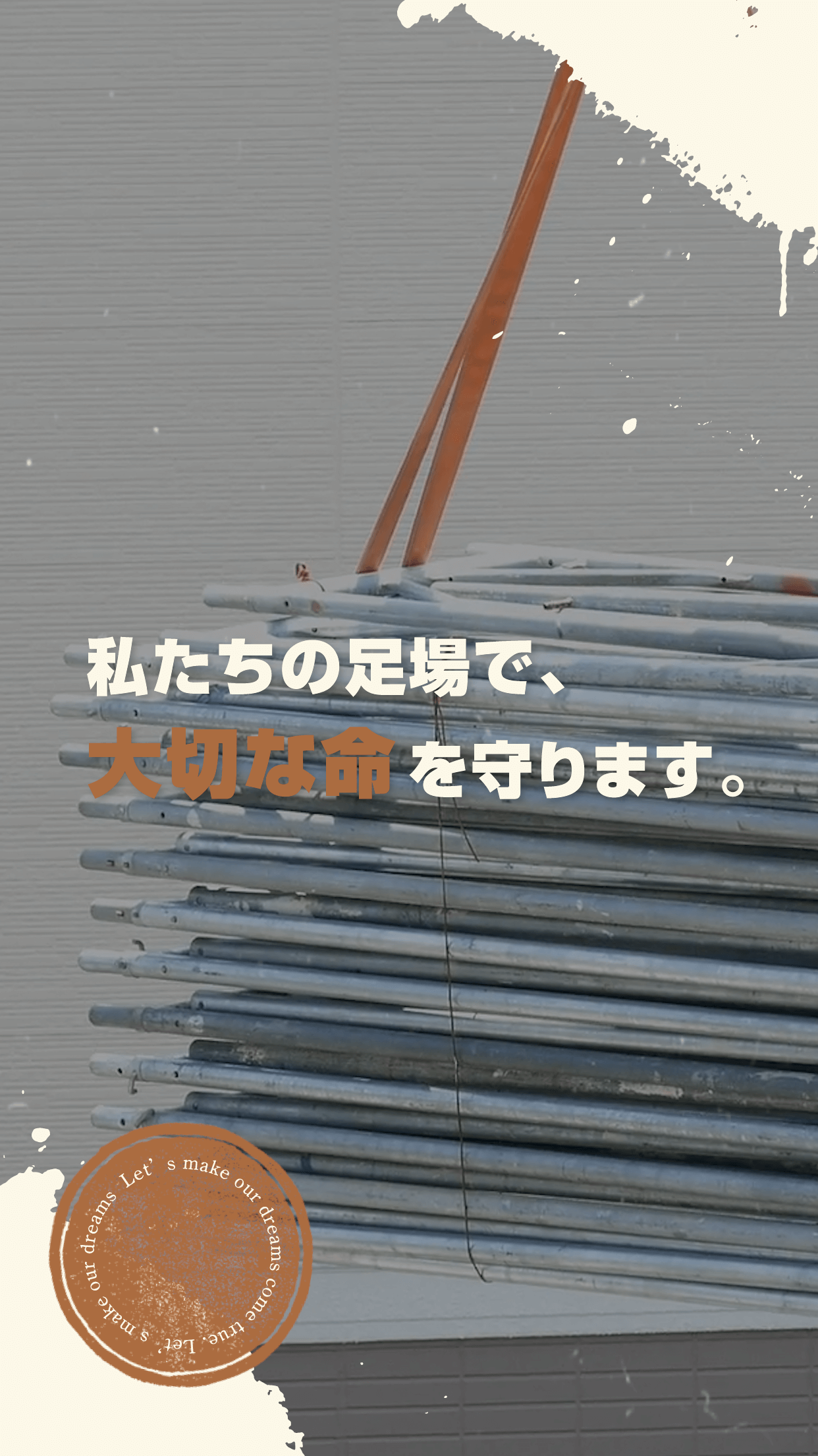 私たちの足場は、社会の未来を創る建築に携わる人々の命を守るかけがえのないものです。